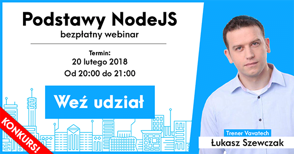 Proponowany webinar to wydarzenie poprzedzające szkolenie Podstawy tworzenia aplikacji w Node.js zaplanowane na 5-7 marca 2018 r. Serdecznie zapraszamy! 🙂